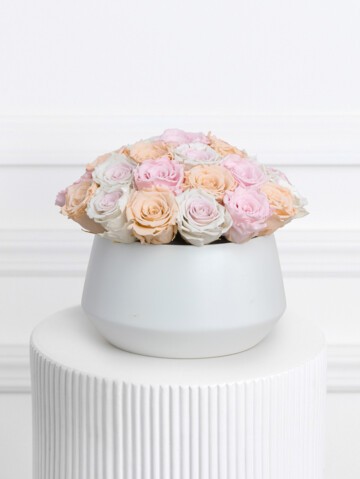 Preserved rose arrangements designed for home décor. Thoughtfully composed pieces made with real roses that last beautifully.
